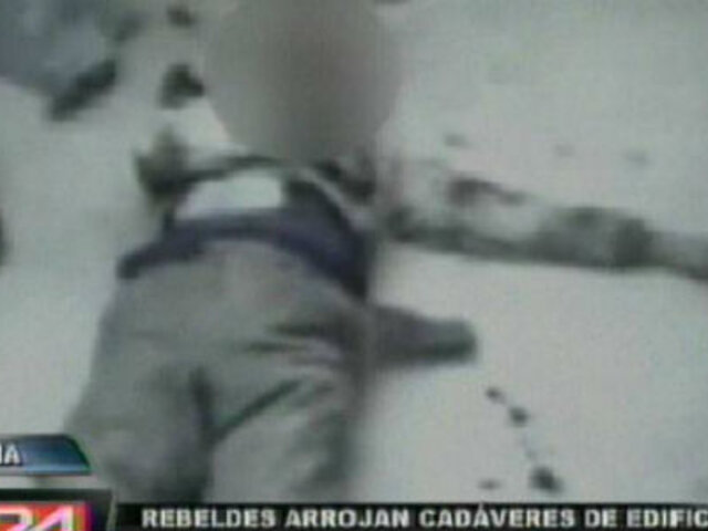 La guerra en Siria sigue dejando escenas terribles. Un nuevo video muestra a los rebeldes arrojando cadáveres desde la azotea de un edificio.