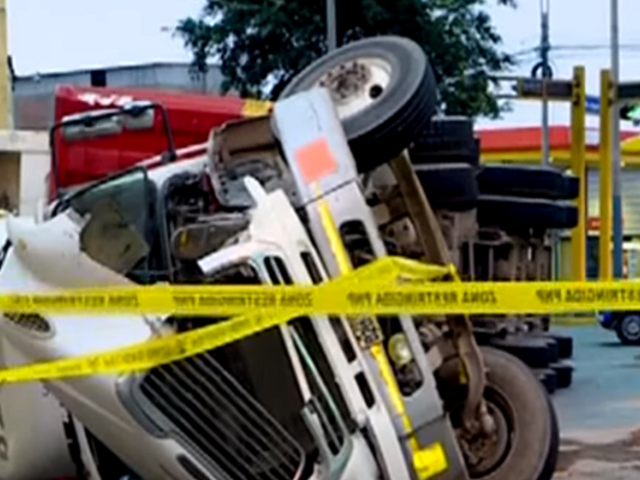 Un tráiler terminó volcado en en el cruce de la avenida Argentina con la avenida Nicolás Dueñas en el Cercado de Lima. La volcadura se reportó aproximadamente a las 3:30 de la madrugada.