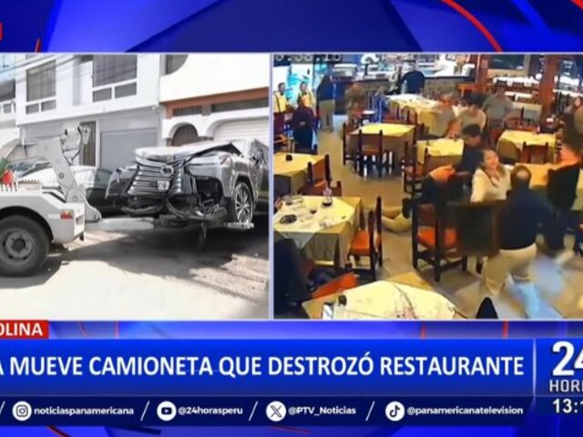 La Municipalidad de La Molina realizó este viernes el retiro de la camioneta que en la víspera protagonizó un confuso incidente al estrellarse contra el frontis del restaurante "El Charrúa", arrollando a su paso a varios comensales.