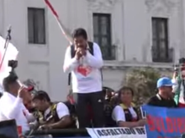 Alcalde de Pataz se une a manifestaciones en la Plaza San Martín y es invitado a Palacio de Gobierno