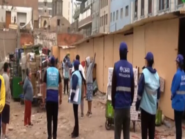 Durante el operativo, también se evidenció que varias quintas de Mesa Redonda continúan siendo utilizadas como depósitos informales. Las cámaras captaron cómo ambulantes ingresaban y salían en fila con carretillas, mientras al interior se almacenaban grandes cajas con mercadería. Incluso, algunas de estas quintas presentaban muros de concreto en sus accesos, un mecanismo que suele emplearse para clausuras definitivas.