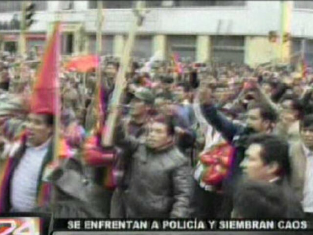 En su primer día de huelga, los maestros del Sutep se enfrentaron en el Centro de Lima. Asimismo, en provincias también provocaron desmanes.