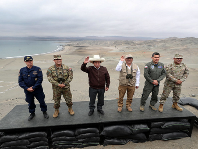 El presidente de la República, Pedro Castillo, participó del desembarco anfibio programado en homenaje al Bicentenario de la Marina de Guerra del Perú, que se desarrolló en la Bahía de Salinas, en Huacho.