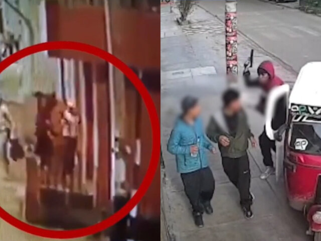 Cámaras de seguridad captaron a los criminales utilizando una mototaxi roja y blanca. Dos jóvenes fueron amenazados por un sujeto que bajó rápidamente del vehículo para arrebatarles sus celulares y dinero, golpeándolos con la cacha de su arma.
