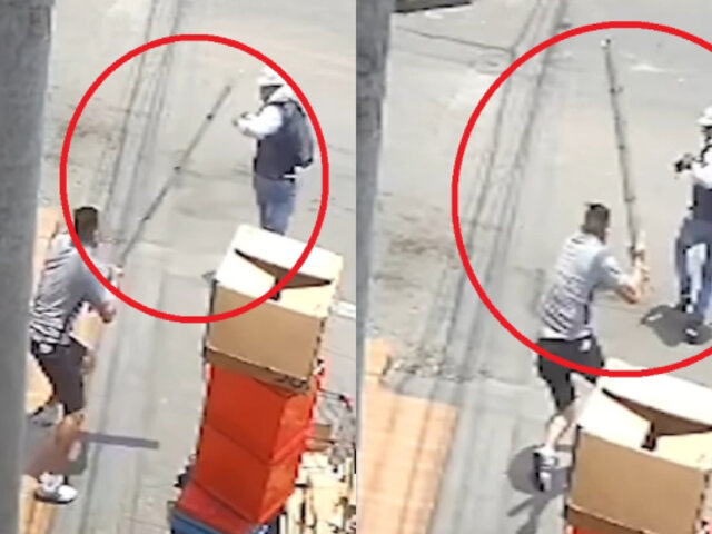 Cámaras de seguridad captaron el preciso momento en que el hombre, cansado de los constantes robos cometidos por el mismo sujeto, persigue a fierrazos al delincuentes, pero este en su defensa le propina varios disparos.