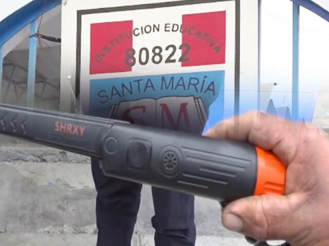 En Trujillo, en el colegio Santa María del distrito de La Esperanzase ha implementado un detector de metales en el ingreso del local educativo, para evitar acciones delictivas por parte de los escolares.