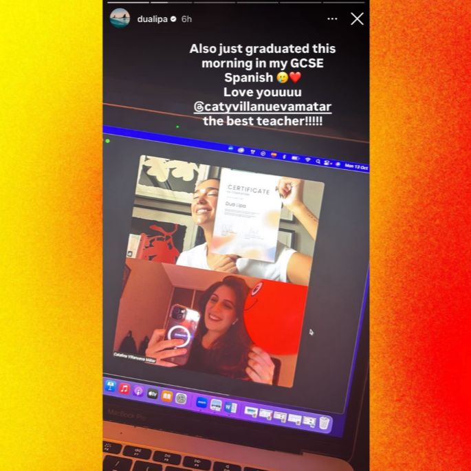 La estrella del pop Dua Lipa acaba de sumar un nuevo logro fuera de los escenarios: se graduó oficialmente en español, tras aprobar el examen GCSE, equivalente al certificado de educación secundaria en el Reino Unido. Lo anunció con orgullo en su cuenta de Instagram, mostrando su diploma junto a su profesora: “Me acabo de graduar esta mañana de mi GCSE de español. ¡Te quiero, @catyvillanuevamatar, la mejor profesora!”, escribió en una historia que rápidamente se viralizó entre sus seguidores hispanos.