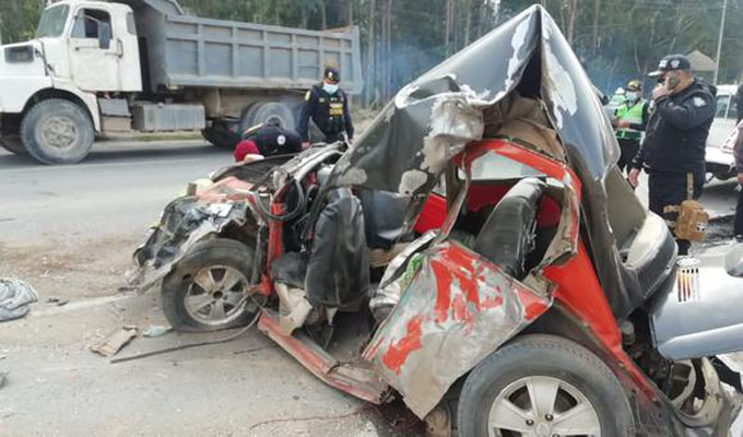 Una camioneta que viajaba de la localidad de Cajas a la ciudad de Huancayo chocó contra una combi que iba en dirección contraria. Según testigos, la combi se salió de su carril impactando contra un Volkswagen de manera frontal, el cual quedó destrozado.