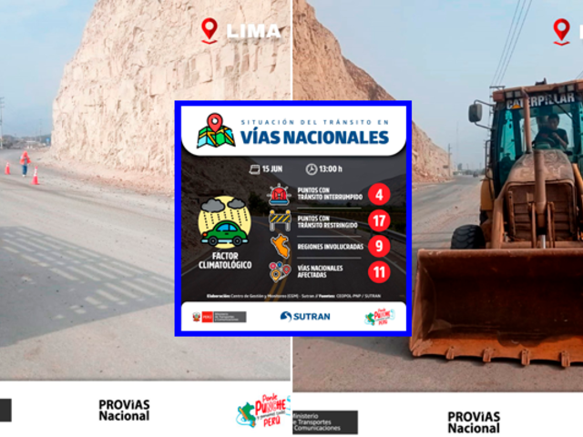 Entre las carreteras afectadas se encuentran el Serpentín de Pasamayo, en el kilómetro 18, distrito de Aucallama, provincia de Huaral, y la carretera Trapiche-Canta-Huayllay-Vicco, en el kilómetro 48, distrito de Santa Rosa de Quives, provincia de Canta. También se reportaron interrupciones en la Longitudinal de la Sierra Sur, en el tramo que conecta Ayacucho, Huamanga y Vinchos, en el kilómetro 291, así como en el kilómetro 380 de la misma vía, en la ruta Ayacucho-Huamanga-Jesús Nazareno. Como medida preventiva, la Costa Verde, desde San Miguel hasta el Callao, fue cerrada al tránsito vehicular para garantizar la seguridad de los usuarios.