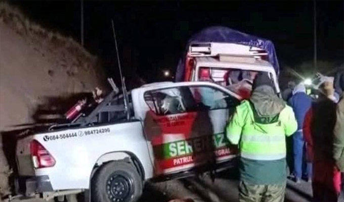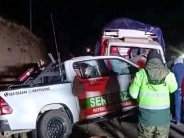 Una camioneta del serenazgo del municipio de Canchis, Cusco, colisionó anoche contra un tráiler en el kilómetro 1232 de la vía Cusco-Juliaca, Puno, causando la muerte de dos personas y dejando heridas a siete personas.