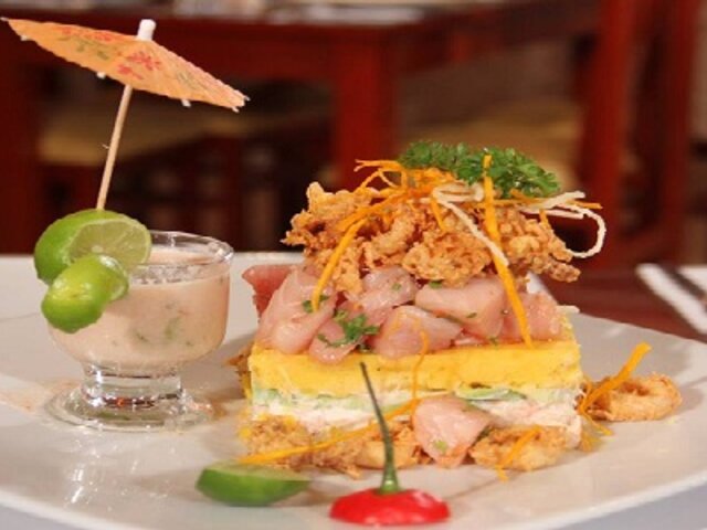 Iniciamos el recorrido en restaurante ‘Don Pasculi’s’, donde probamos una suculenta causa ‘carretillera’ que está rellena de mariscos, y que viene acompañada con ceviche y chicharrón de calamar.